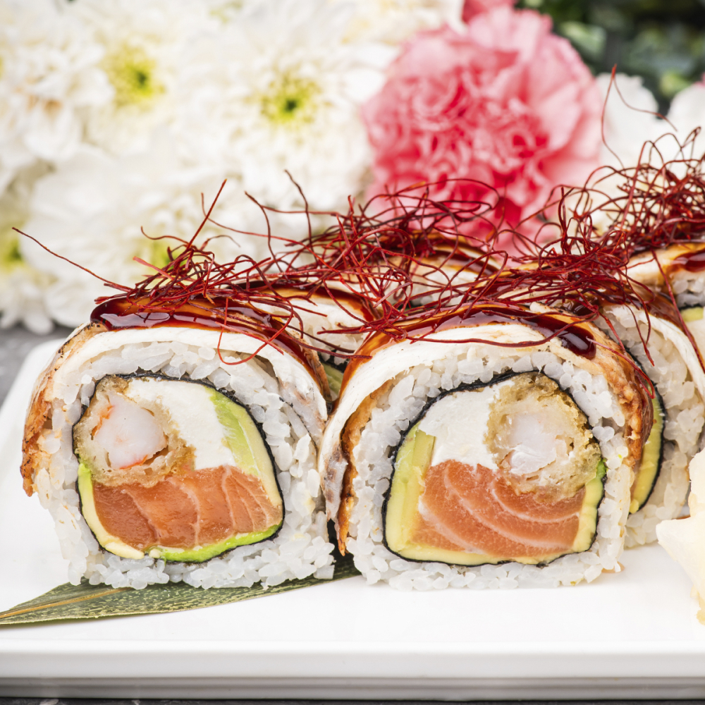 Великий рол з лососем, вугром та креветкою
