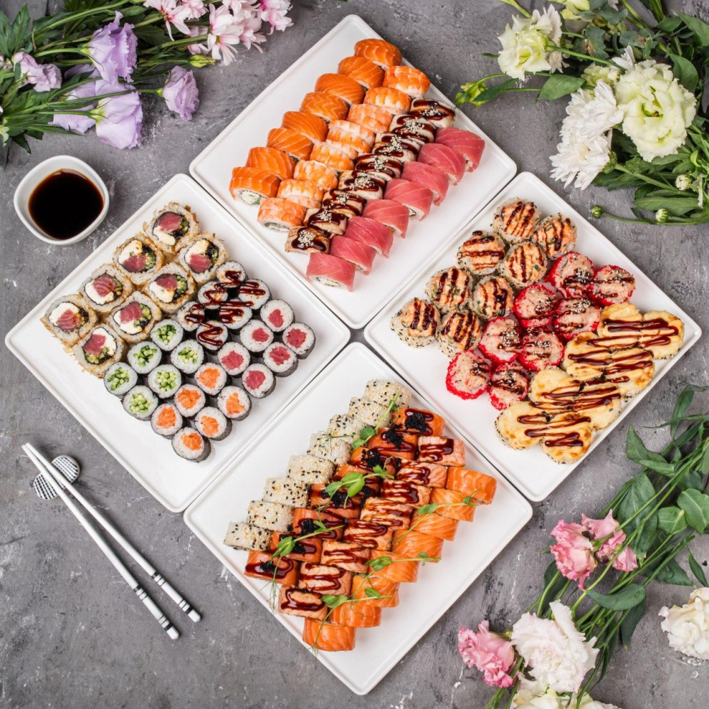 - Макі з вугром, Макі з тунцем, Макі з лососем, Макі з огірком, Філадельфія з лососем і авокадо, Рол запечений з креветкою і сніжним крабом, Філадельфія з креветкою, Теплий рол каліфорнія з копченим лососем, Рол зі слабосоленим лососем та креветкою, Філадельфія з лососем татакі (обпаленим), Каліфорнія з лососем, Теплий рол з лососем і зеленою цибулею, Філадельфія з лососем, Філадельфія з тунцем, Рол з тунцем у стружці, крем-сиром і огірками, Філадельфія з вугром і омлетом тамаго.